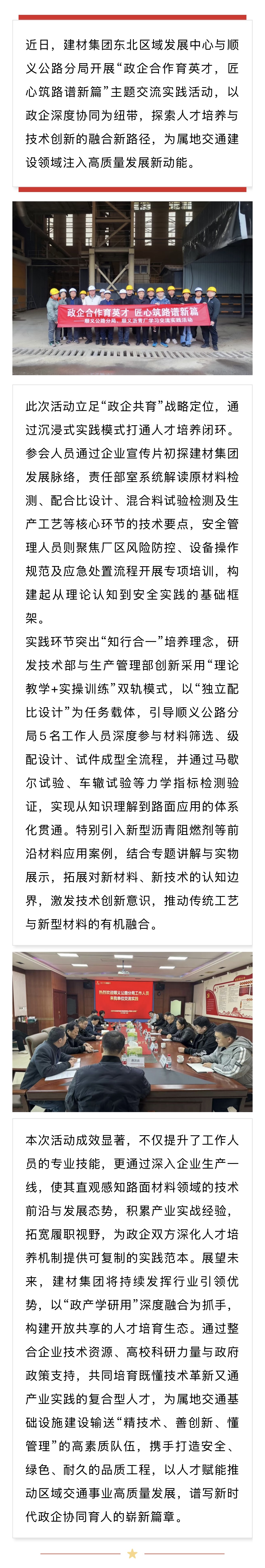 【政企合作育英才 匠心筑路谱新篇】建材集团东北区域发展中心与顺义公路分局开展交流实践活动